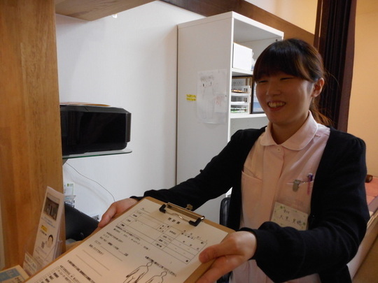 受付で問診票をお渡し致しますのでご記入をお願いします。ゆっくりお書き下さい。